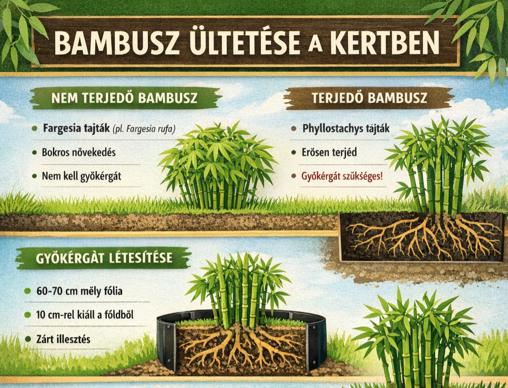 Bambusz ültetése nem terjedő fajtákkal – biztonságos megoldás kiskertekbe
