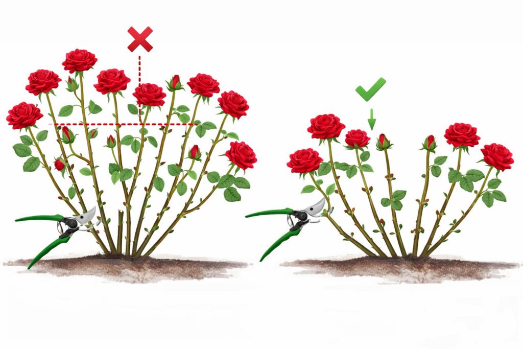 A bokros növekedésű rózsák tavaszi metszése